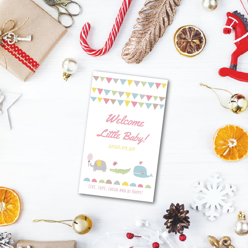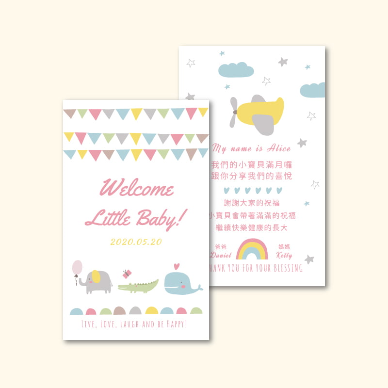 使用我們的設計製作可愛的彌月卡,簡單修改資訊、上傳照片即可製作。
