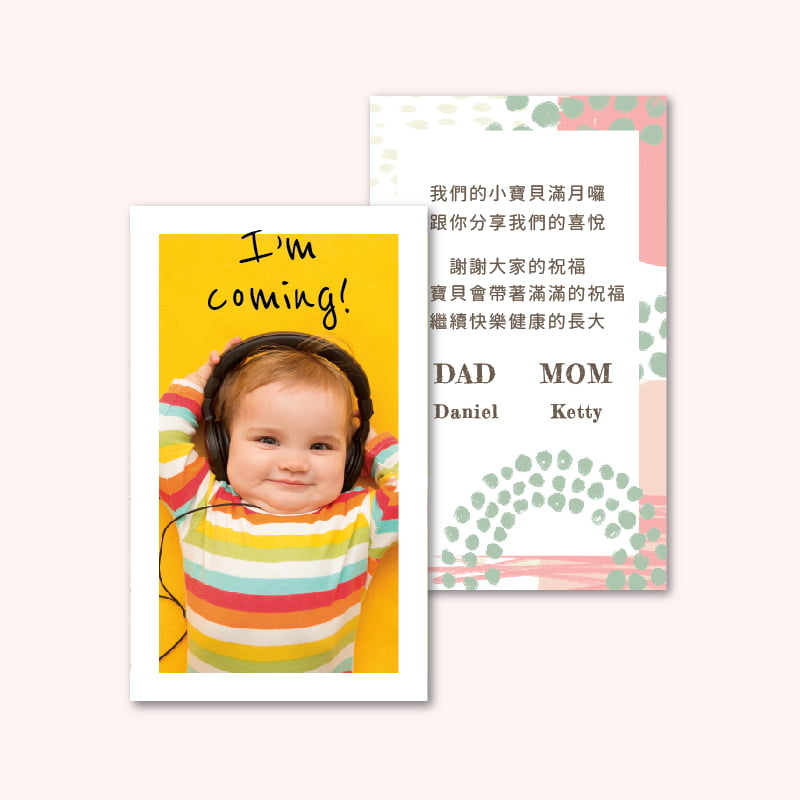 使用我們的設計製作可愛的彌月卡,簡單修改資訊、上傳照片即可製作。