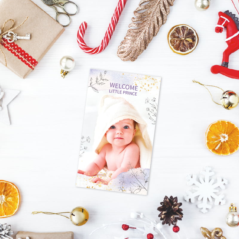 使用我們的設計製作可愛的彌月卡,簡單修改資訊、上傳照片即可製作。