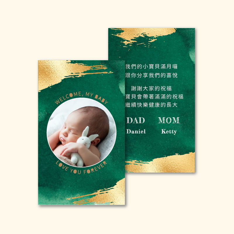 使用我們的設計製作可愛的彌月卡,簡單修改資訊、上傳照片即可製作。 免運費-本產品不須運費
