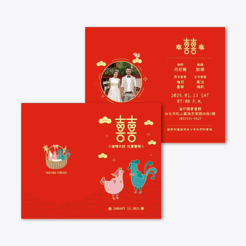 彩色雙面喜帖,精選多樣設計,自由編輯內容,線上製作所見即所得,多種優質紙材選擇,精湛台灣在地印刷,無可比擬的絕佳性價比