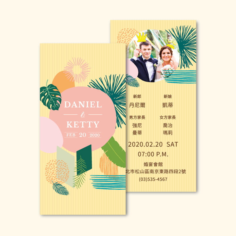 彩色雙面喜帖,精選多樣設計,自由編輯內容,線上製作所見即所得,多種優質紙材選擇,精湛台灣在地印刷,無可比擬的絕佳性價比
