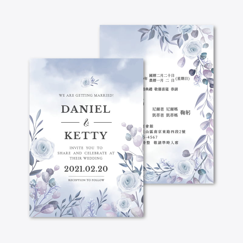 彩色雙面喜帖,精選多樣設計,自由編輯內容,線上製作所見即所得,多種優質紙材選擇,精湛台灣在地印刷,無可比擬的絕佳性價比