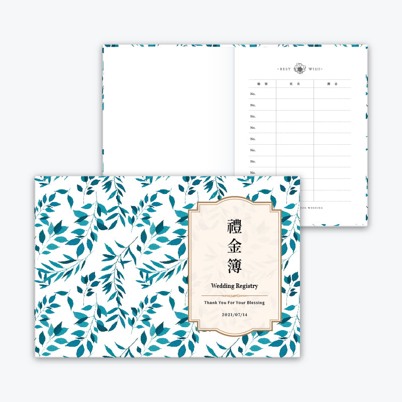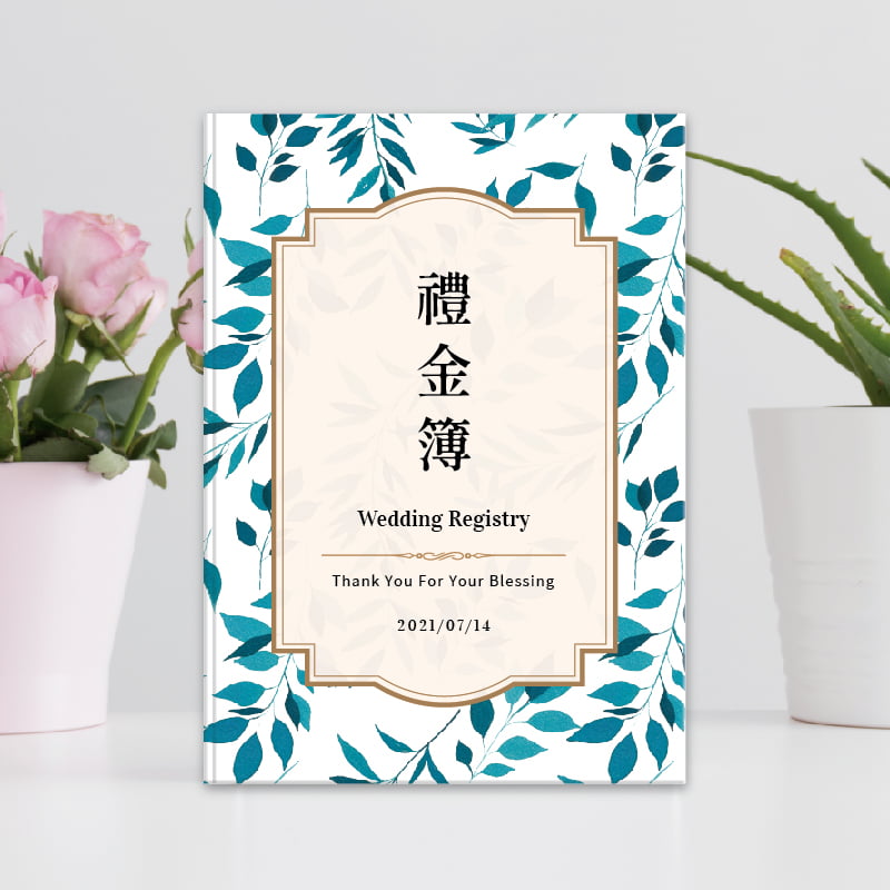 婚禮收禮處使用的禮金簿,可客製調整封面與封底,表面霧膜滑順觸感,24 頁畫刊紙內頁共240欄,每頁可書寫 10 位賓客