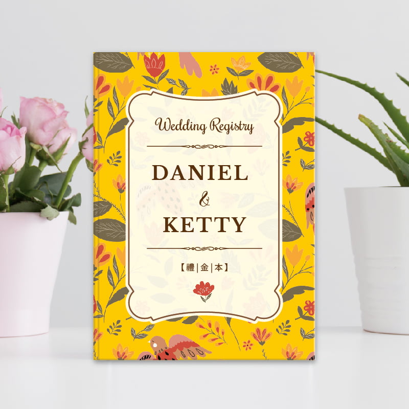 婚禮收禮處使用的禮金簿,可客製調整封面與封底,表面霧膜滑順觸感,24 頁畫刊紙內頁共240欄,每頁可書寫 10 位賓客