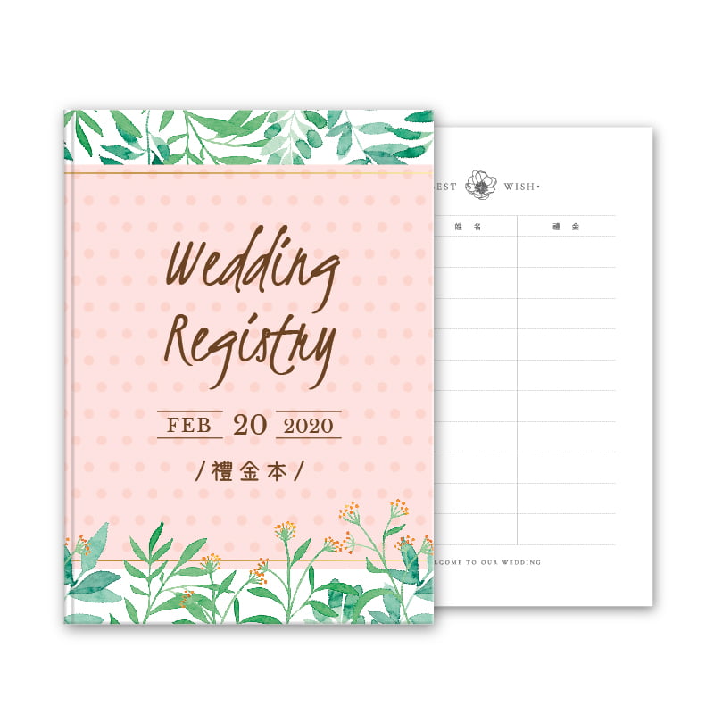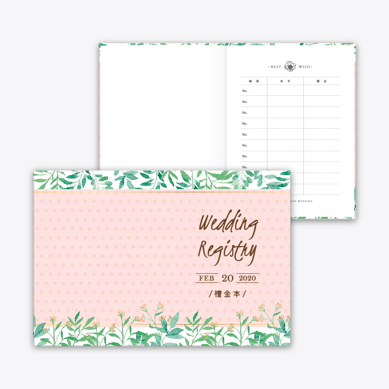 婚禮收禮處使用的禮金簿,可客製調整封面與封底,表面霧膜滑順觸感,24 頁畫刊紙內頁共240欄,每頁可書寫 10 位賓客