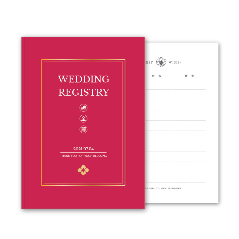 婚禮收禮處使用的禮金簿,可客製調整封面與封底,表面霧膜滑順觸感,24 頁畫刊紙內頁共240欄,每頁可書寫 10 位賓客