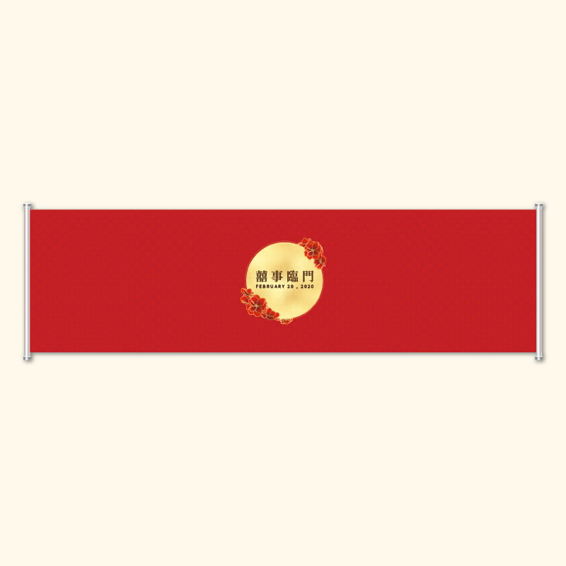 使用珍珠緞面布料印製,尺寸145x40cm,含鋁桿軸心,使用既有設計即可印製