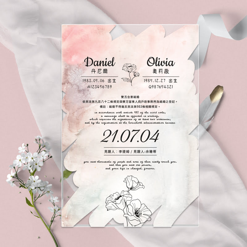 台灣設計製作的精美設計的透明壓克力書約,適合用來紀念最重要的這一天。